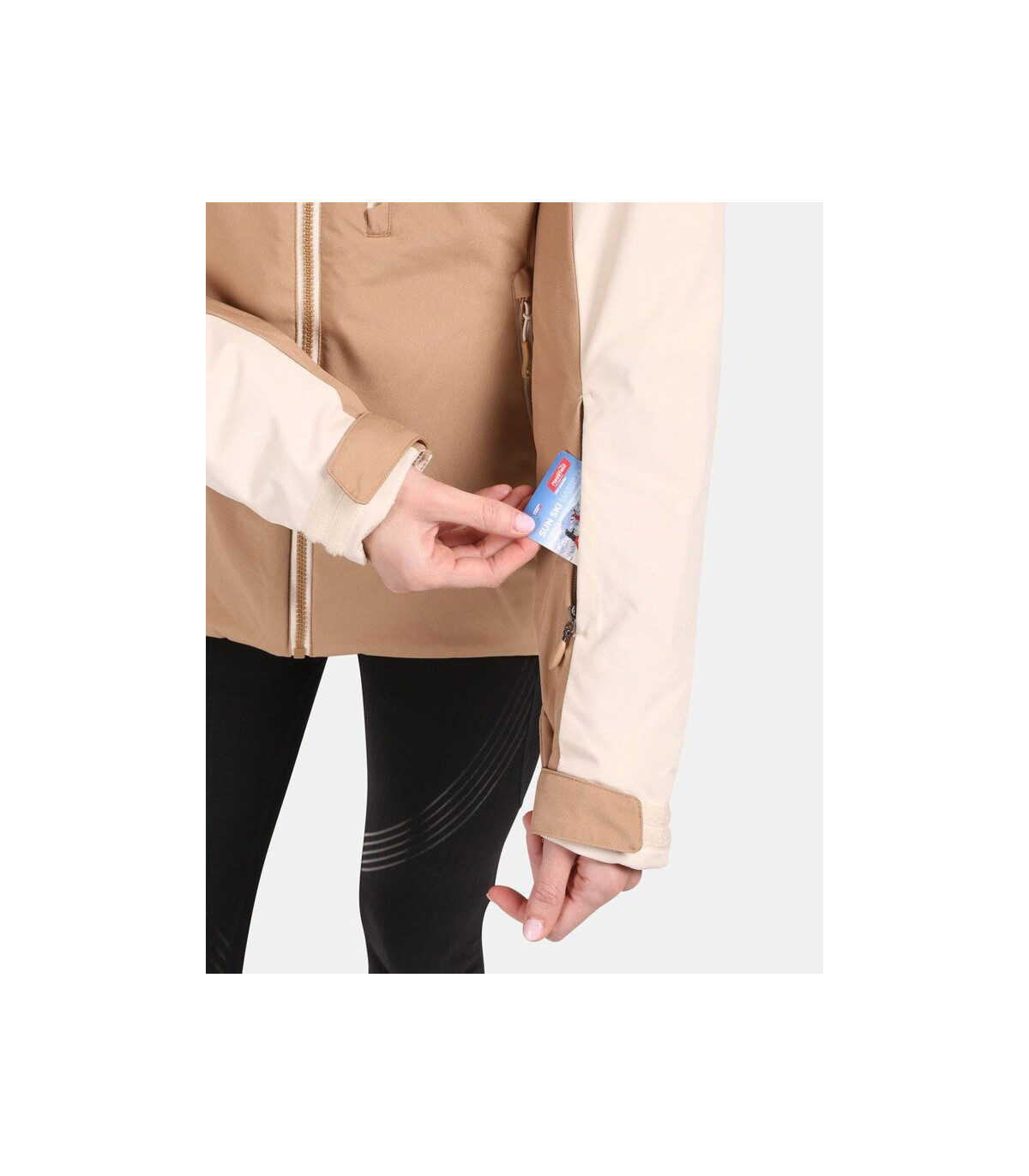 Περιλαμβάνει δύο κύριες τσέπες με φερμουάρ, μια τσέπη στο μανίκι για το skipass και εσωτερική τσέπη για γυαλιά ή κινητό.