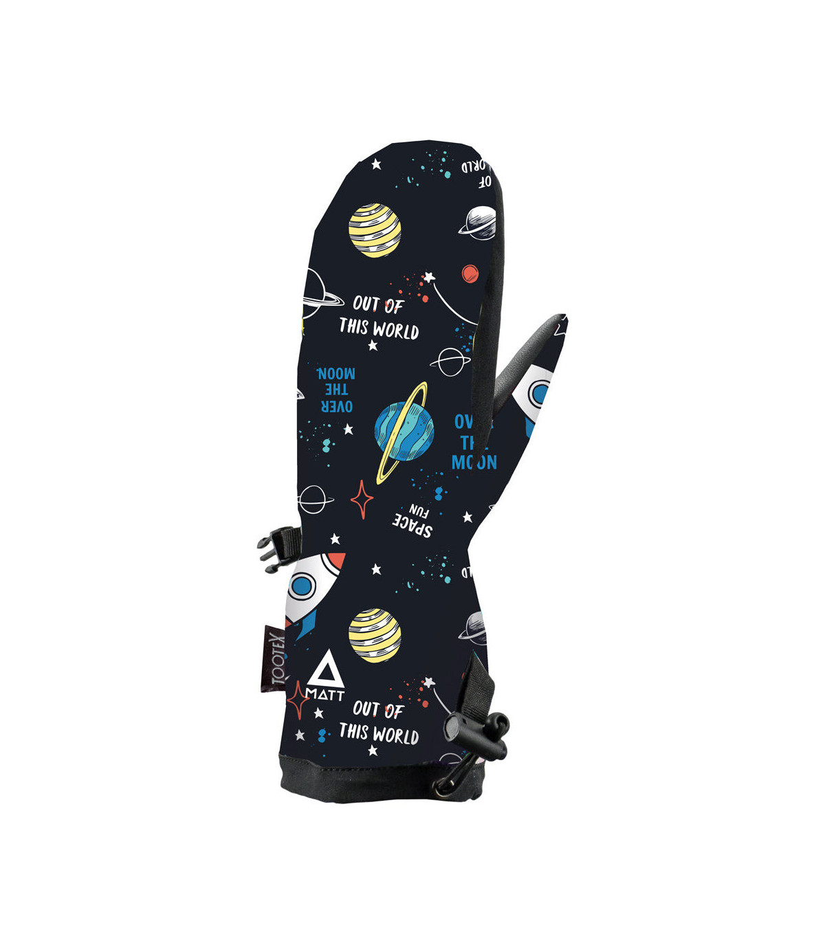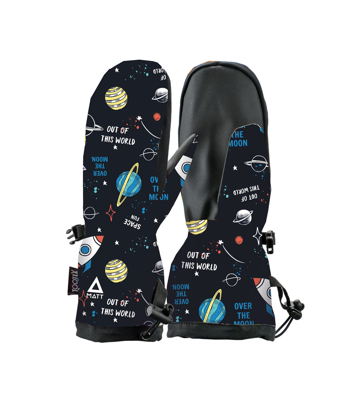 Τα OUT IN SPACE παιδικά γάντια διαθέτουν μεμβράνη TOOTEX για αδιαβροχοποίηση και διαπνοή, ιδανικά για χειμερινές δραστηριότητες και παιχνίδι στο χιόνι ή το κρύο. Ρυθμίζονται στο αντιβράχιο με ελαστικό ιμάντα και stopper για ασφαλές κλείσιμο. Το εσωτερικό τους διαθέτει μαλακή θερμομονωτική επένδυση, διατηρώντας τα χέρια ζεστά και άνετα, ενώ το εσωτερικό και το εξωτερικό ύφασμα είναι πολυεστέρα, με εσωτερική επένδυση PU (τεχνητό δέρμα) στην παλάμη για μεγαλύτερη αντοχή. Διαθέτουν επίσης ελαστική λωρίδα για να μην χάνονται από το χέρι στο παιχνίδι. Αυτά τα γάντια προτείνονται για παιδιά που χρειάζονται αξιόπιστη προστασία, άνεση και ευκολία στη χρήση για καθημερινή χρήση, σκι και υπαίθριες δραστηριότητες, σε συνθήκες χαμηλών θερμοκρασιών.