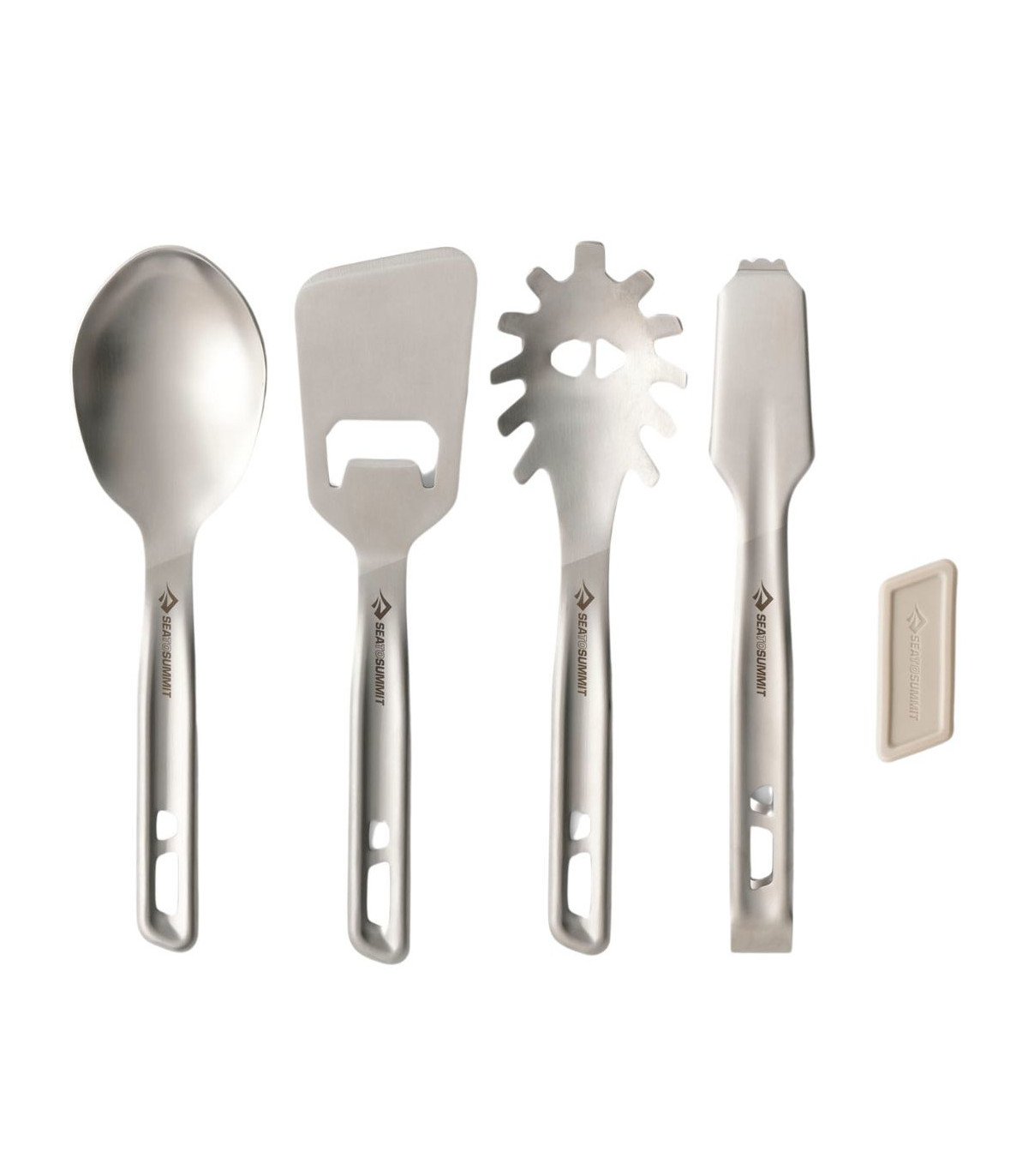 Το ανθεκτικό σετ μαγειρικών σκευών Detour από ανοξείδωτο χάλυβα μπορεί να αναδιπλωθεί για εξοικονόμηση χώρου. Με εργονομικό σχήμα και θήκη σιλικόνης για αποθήκευση, φέρνει την κουζίνα του σπιτιού στο κάμπινγκ. Περιλαμβάνει κουτάλι σερβιρίσματος, τρυπητή κουτάλα, τσιμπίδα, σπάτουλα & θήκη σιλικόνης.