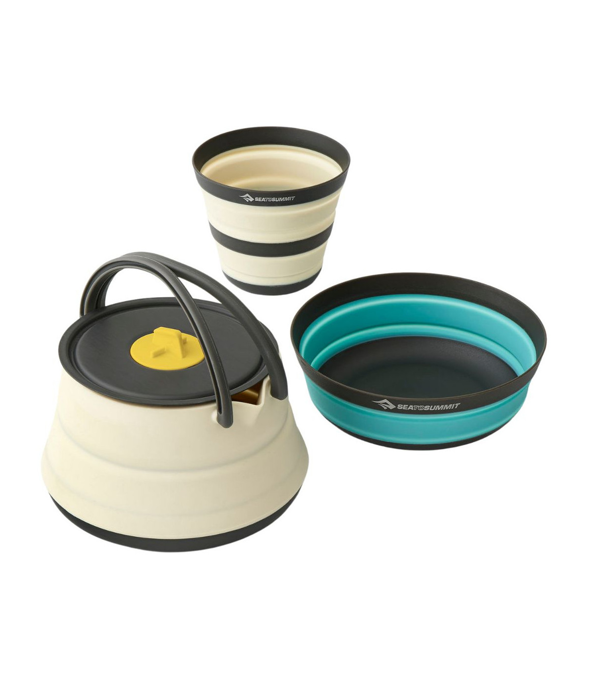 Το σετ μαγειρικών σκευών Frontier με βραστήρα θα σας προσφέρει ένα διάλειμμα για καφέ ή τσάι στην ύπαιθρο. Ο πτυσσόμενος βραστήρας 1,1 λίτρων είναι κατασκευασμένος από ανοδιωμένο αλουμίνιο για γρήγορη μεταφορά της θερμότητας, διαθέτει λαβές από νάιλον ενισχυμένες με γυαλί για σταθερότητα και μπορεί να χρησιμοποιηθεί και ως κατσαρόλα. Μαζί με το μπολ και την κούπα, θα γίνει το απαραίτητο σετ για τις εκδρομές σας. Χαρακτηριστικά: • Περιλαμβάνει 1 βραστήρα 1,1L, 1 μπολ και 1 κούπα • Ο βραστήρας είναι κατασκευασμένος από ανοδιωμένο αλουμίνιο • Λαβή LidKeep για να κουμπώνει άνετα το καπάκι στο χείλος του βραστήρα • Με την εγγύηση της Sea to Summit