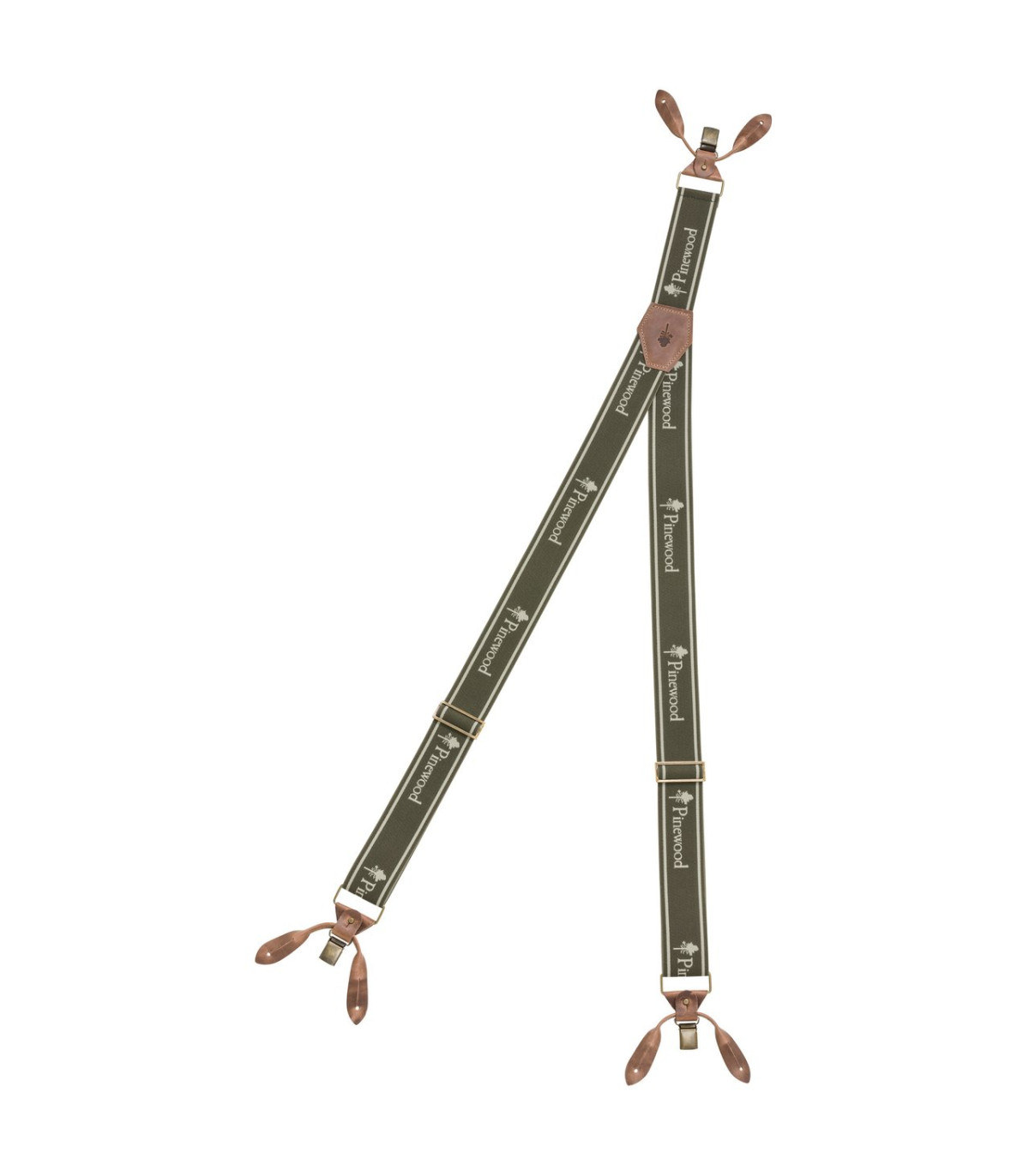 Πράσινες τιράντες με μεταλλικά κλιπ και δερμάτινα λουριά με το λογότυπο Pinewood.