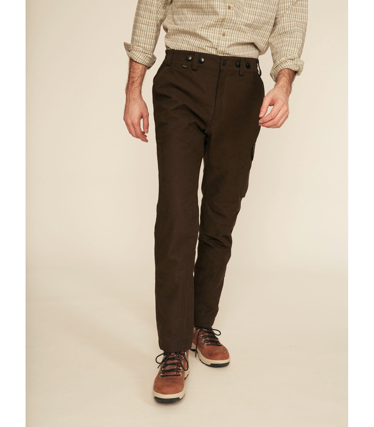 Ελαφρύ παντελόνι, 100% αδιάβροχο με διαπνέουσα μεμβράνη MTD. Υψηλότερο στο πίσω μέρος ώστε να καλύπτεται η μέση. Κουμπιά για τιράντες.