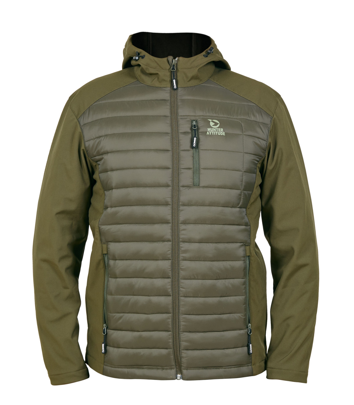 Πολύ ζεστό και απαλό πράσινο μπουφάν, που συνδυάζει νάιλον και softshell υφάσματα.