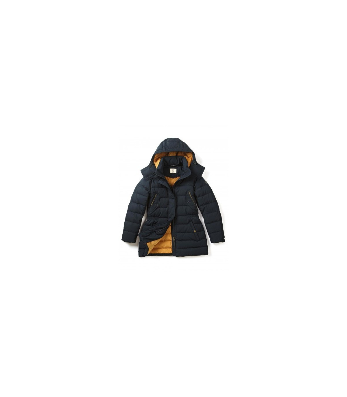 Πολύ ζεστό σκούρο μπλε υδρόφοβο πουπουλένιο μπουφάν. Ρυθμιζόμενη κουκούλα και ελαστική μέση για καλύτερη εφαρμογή.