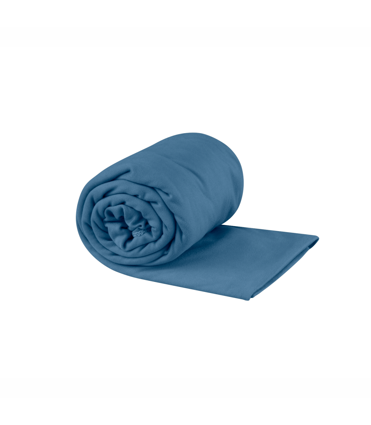Ελαφριά και εύκολα συσκευάσιμη μπλε πετσέτα. Απορροφά τρεις φορές το βάρος της σε νερό και στεγνώνει εξαιρετικά γρήγορα. Με απαλή και μεταξένια πλέξη.