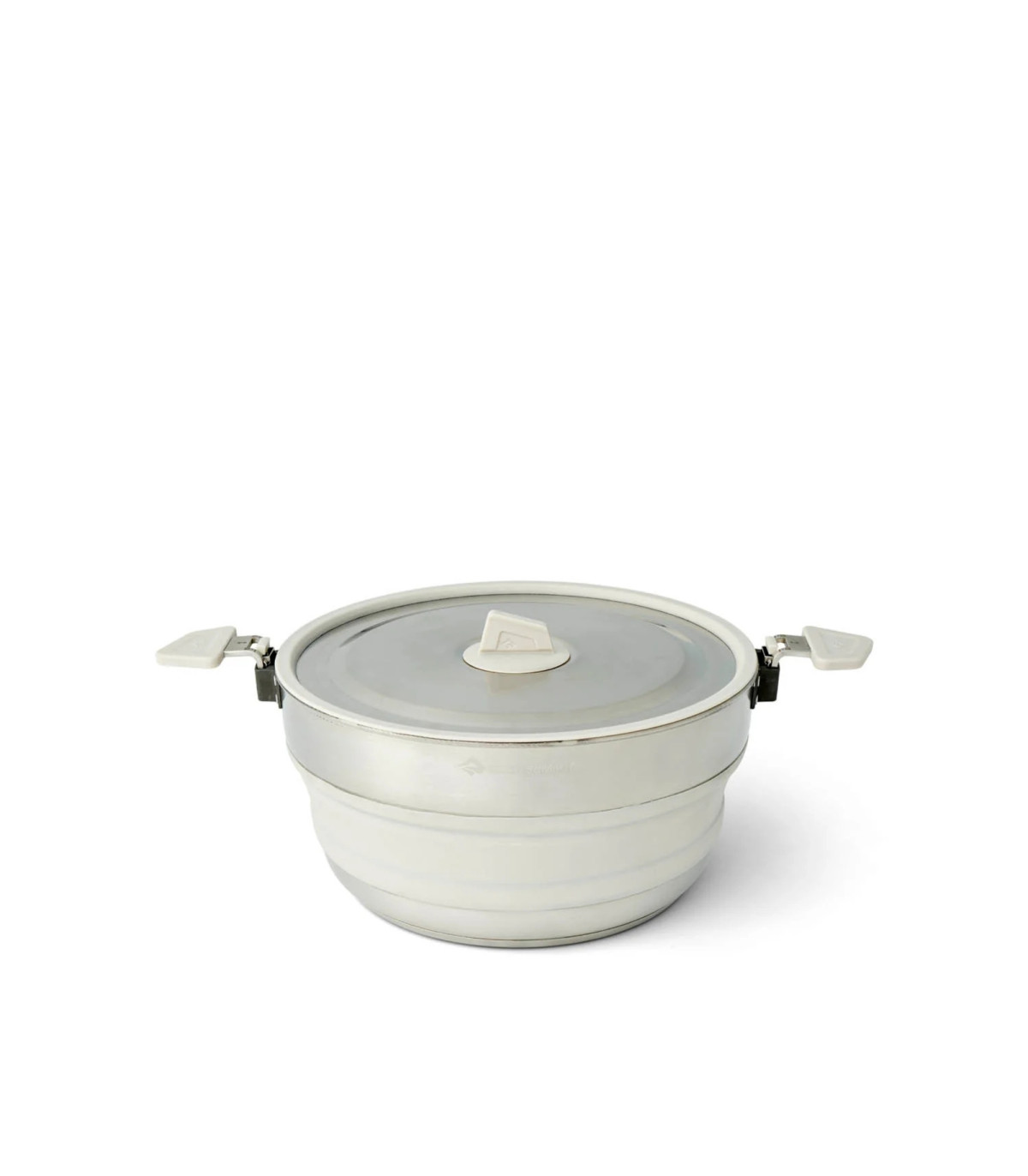 Οι κατσαρόλες Detour της Sea to Summit, προσφέρουν αντοχή, εργονομία και εξαιρετική θερμική απόδοση χάρη στον τριπλό πάτο που διαθέτει. Κατασκευασμένες από ανθεκτικό ανοξείδωτο ατσάλι.Ο πτυσσόμενος σχεδιασμός εξοικονομεί χώρο στο σακίδιο ενώ οι Dual Click-Safe λαβές προσφέρουν ασφαλές κράτημα στο μαγείρεμα και έξυπνο κλείδωμα για τη μεταφορά. Μαγείρεψε σαν στο σπίτι, ακόμα και στη μέση του πουθενά.Χαρακτηριστικά:Κατάλληλες για επαγωγικές, ηλεκτρικές και γκαζιού εστίεςΤριπλός πάτος για ομοιόμορφη θερμική κατανομήΠτυσσόμενος σχεδιασμός για εξοικονόμηση χώρουΑναστρέψιμες λαβές Click-Safe: ασφαλές κράτημα + κλείδωμα στο καπάκι