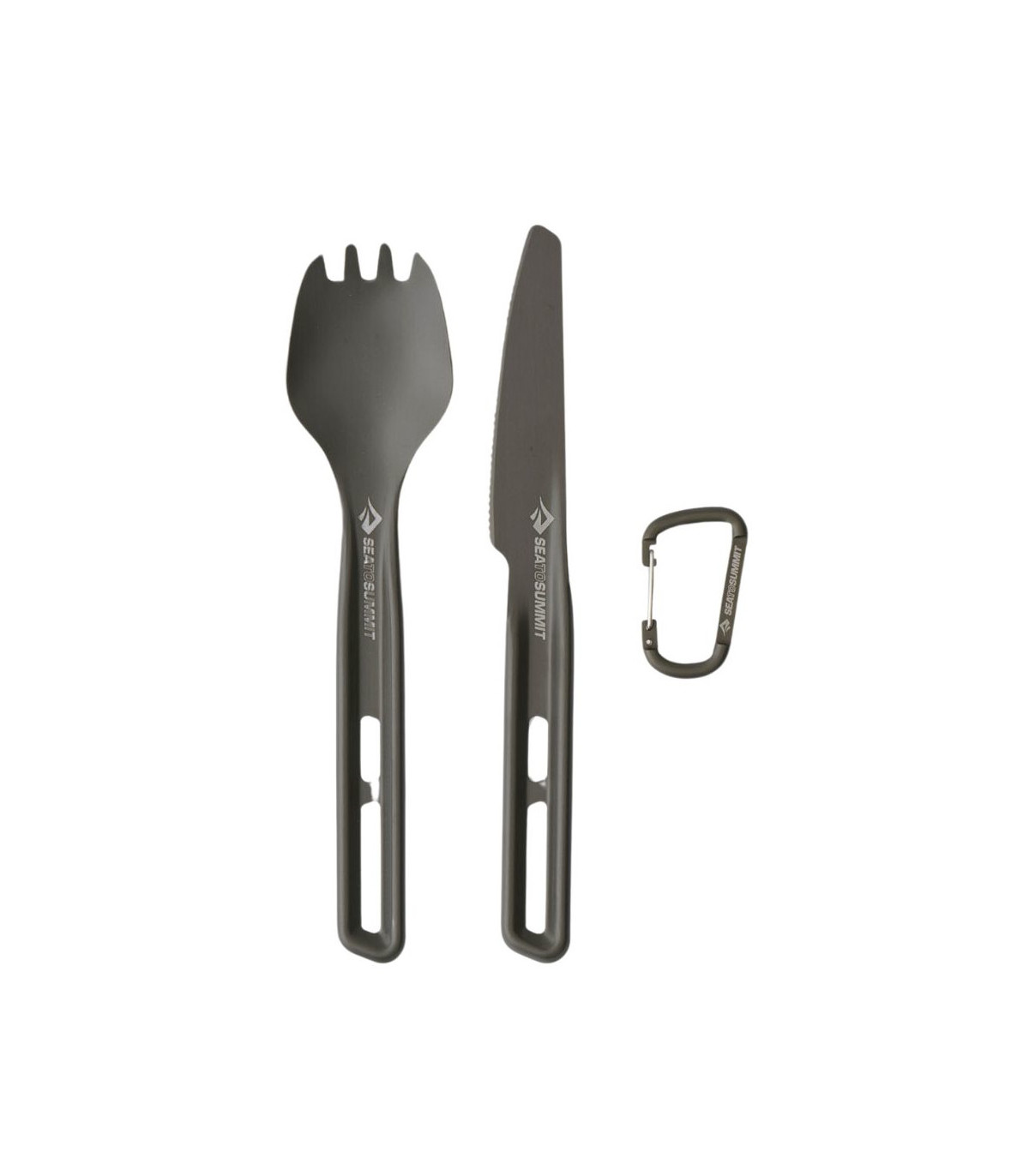 Το ελαφρύ και ανθεκτικό σετ μαχαιροπίρουνων της σειράς Frontier δεν πρέπει να λείπει από το κάμπινγκ. Διαθέτει 1 μαχαίρι και 1 κουταλοπίρουνο, κατασκευασμένα από ανοδιωμένο αλουμίνιο αεροπορικού τύπου και 1 καραμπίνερ για την εύκολη αποθήκευση και μεταφορά των σκευών.