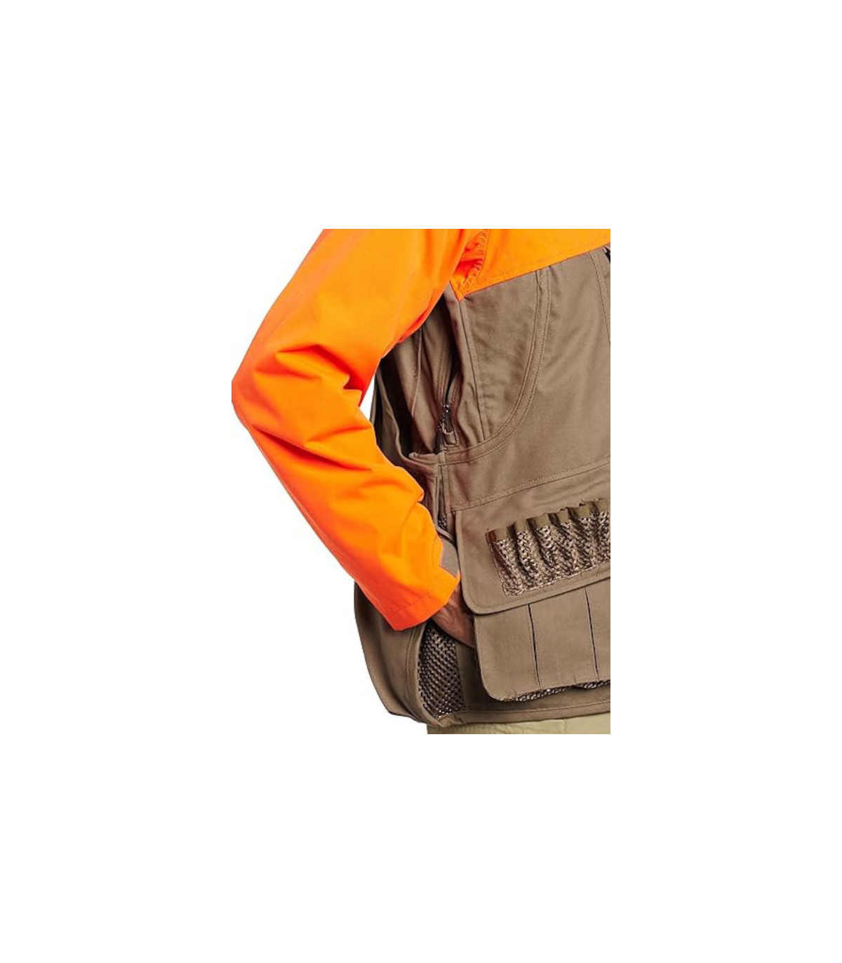 • Αφαιρούμενα Μανίκια: Τα μανίκια του εξωτερικού κελύφους αφαιρούνται με φερμουάρ, μετατρέποντας το μπουφάν σε ένα λειτουργικό γιλέκο κυνηγίου.