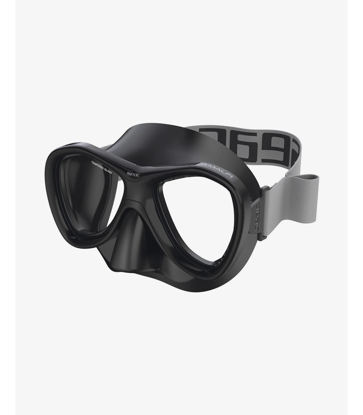 Εργονομική μάσκα SEAC Amalfi με υποδοχή από μαλακή σιλικόνη, φακούς από σκληρυμένο γυαλί και υφασμάτινο ιμάντα, ιδανική για κατάδυση και snorkeling.